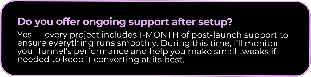 I’ve built funnels for coaches, mentors, and course creators who wanted freedom from tech stress — and now, I’m here to help you do the same. Let’s build a funnel that supports your flow — and grows with you. From tech-stuck to scalable and confident — that’s the transformation I help you create.